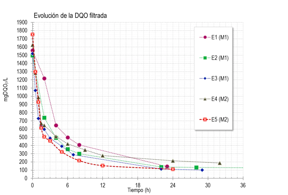 Con el ensayo de biodegradabilidad se determina la fracción no biodegradable del agua residual y el tiempo necesario para la eliminación de la fracción biodegradable, pero si se completa con un estudio de respirometría con determinación online de la OUR (velocidad de consumo de oxígeno), los resultados son más precisos y concretos, indicándonos qué requerimientos de transferencia de oxígeno (OTR) serán necesarios para alcanzar dicha velocidad de degradación. En estos ensayos se constata que el uso de oxígeno puro para multiplicar la OTR en procesos de alta carga puede ser más recomendable, consiguiendo eliminar la carga en menor volumen (y previniendo la generación de filamentosas).